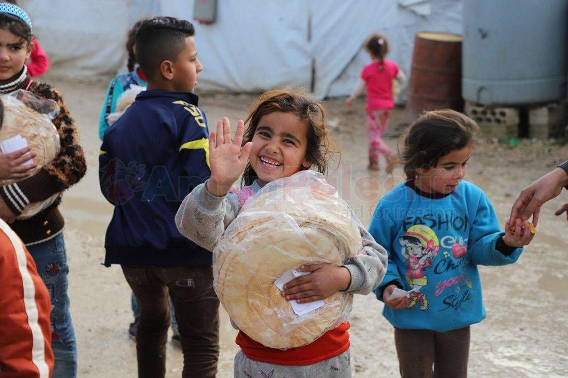 AMAN Palestin Berhad mengagihkan 14,000 keping roti di enam kem pelarian Syria di Lembah Beqaa, Lubnan, semalam.