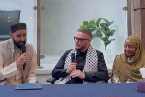 Shaun yang cukup dikenali dengan kelantangannya berbicara tentang isu yang berlaku di Semenanjung Gaza telah melafaz syahadah bersama isterinya bersaksikan Imam Omar Suleiman.