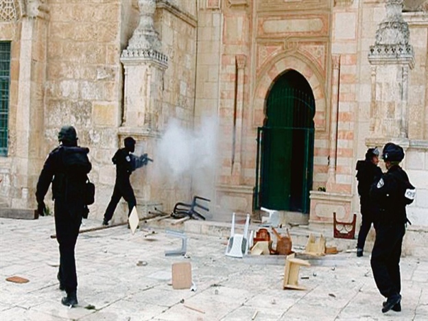 BAITULMAQDIS – PALESTIN. Kumpulan pelampau Yahudi diiringi rejim Zionis bertindak biadab menyerbu pekarangan Masjid al-Aqsa di Baitulmaqdis Timur hingga mencetuskan pertempuran dengan penduduk Palestin, awal pagi semalam.