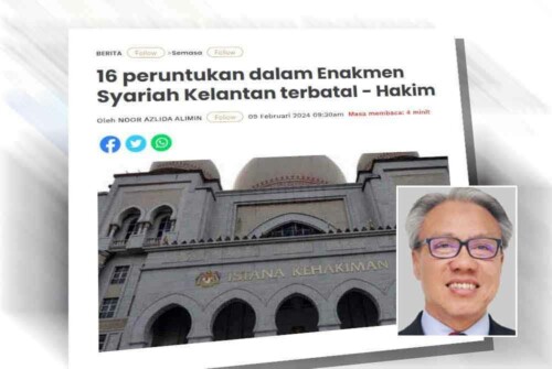 “Dalam 20 peruntukan yang dicabar yang kemudiannya menjadi 18, hanya 16 peruntukan diisytiharkan sebagai batal dan tidak sah iaitu seksyen 11, 14, 16, 17, 31, 34, 36, 37(1)(b), 39, 40, 41, 42, 43, 44, 45, 47 dan 48 Enakmen tersebut,” katanya lagi.