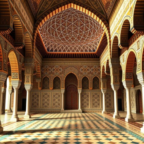 • Masjid Cordoba, Sepanyol: Menggunakan corak geometri bintang dan lengkung simetri.