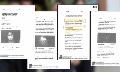 Perkara ini dilaporkan oleh media (rujuk gambar untuk laporan media penuh, yang telah difotokopi dan difailkan sebagai bukti di Mahkamah) dalam temu bual melalui telefon sehari selepas kanak-kanak tersebut dipulangkan ke dalam jagaan penuh ibu non-Muslim mereka: “The children said they had just performed their subuh prayers and were glad to be home with their mother.