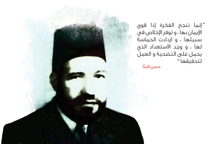 As-Syahid Hasan bin Ahmad bin Abdul Rahman al-Banna rh.a. dilahirkan di Bandar Mahmudiah (berdekatan Iskandariah) pada tahun 1906. Beliau menamatkan pengajian di Sekolah Dar al-Ulum, Kaherah dan kemudian bertugas sebagai pengajar yang sering berpindah dari satu bandar ke satu bandar. Beliau mengajak umatnya supaya mengamalkan al-Quran al-Karim dan berpegang teguh dengan sunnah Nabi s.a.w.. Melalui usahanya ini beribu-ribu mahasiswa, buruh, peladang dan sebagainya daripada pelbagai lapisan masyarakat mendapat hidayah. Setelah itu, beliau menetap beberapa ketika di bandar Ismailiah. Di sini beliau menubuhkan pejabat pertama Ikhwan bersama-sama beberapa orang anggota Ikhwan lain.