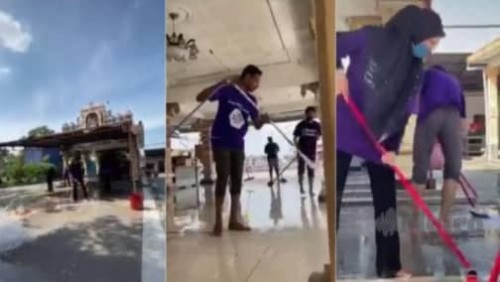 Terdahulu, menerusi video tular berdurasi 0.29 saat itu memaparkan sekumpulan penuntut Islam membantu membersihkan sekitar kawasan kuil yang terjejas akibat banjir baru-baru ini. – My Metro